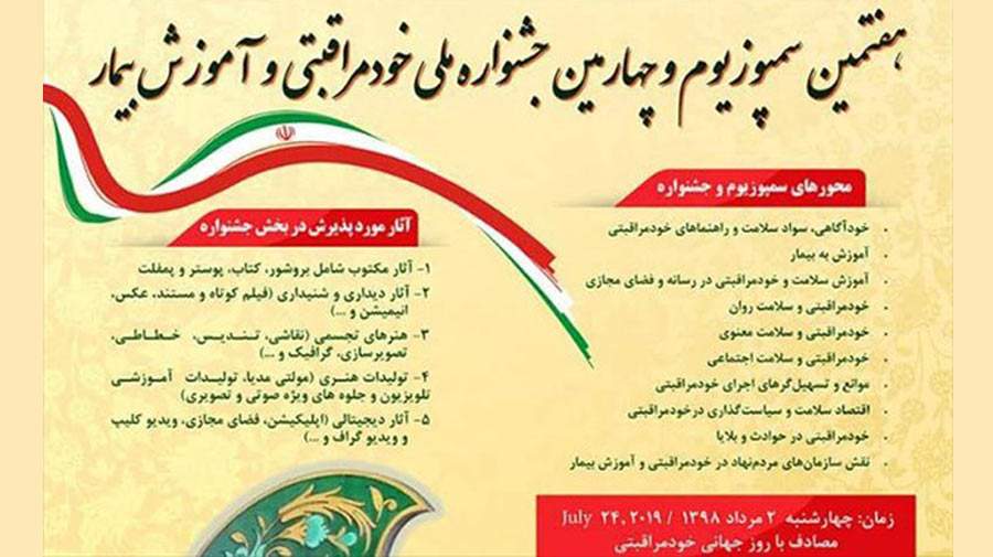 هفتمین سمپوزیوم و چهارمین جشنواره ملی خود مراقبتی و آموزش بیمار در روز دوم مردادماه همزمان با روز جهانی خودمراقبتی در تالار امام، بیمارستان امام خمینی تهران برگزار می شود.