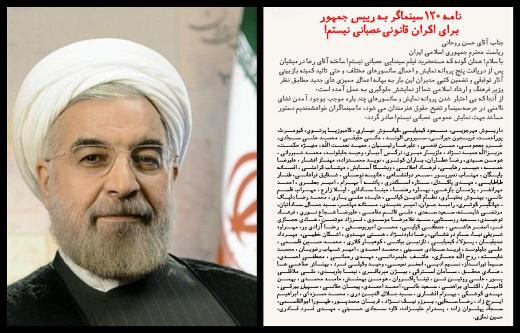 نامه ١٢٠ سينماگر به رئيس جمهور براى اكران قانونى "عصبانى نيستم!"